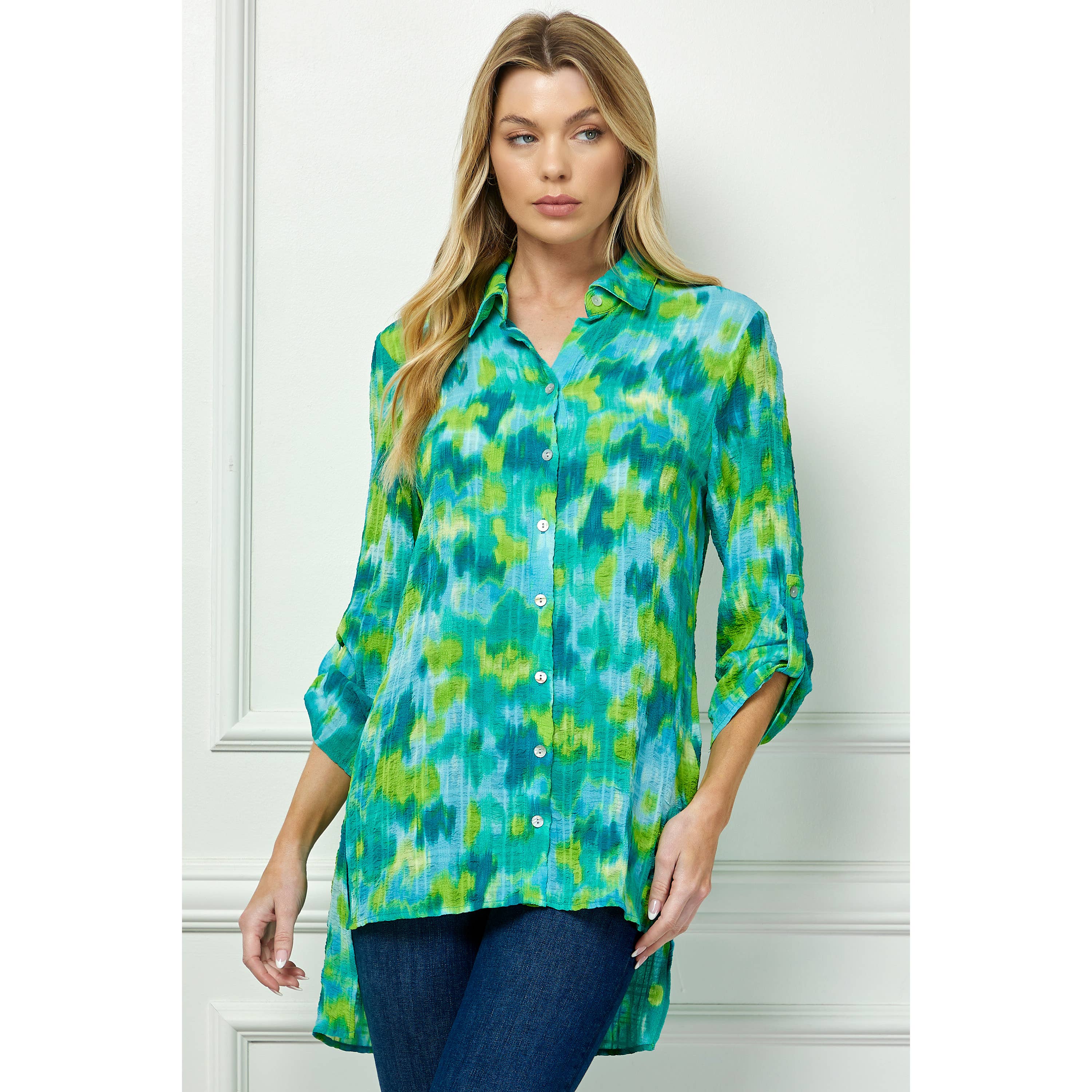 The Magic Scarf Company - Wholesale Button Down Shirt - Women's - 1148 - Satin Mini Pleats Blouses41