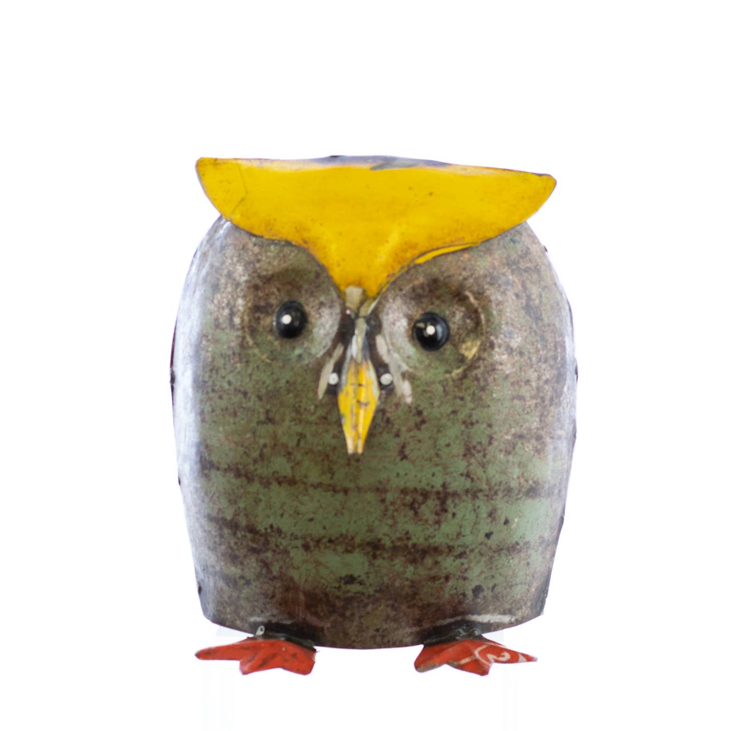 5.5” H Funky Yellow Owl. These charming personality-filled recycled metal animals are ethically handmade in India.