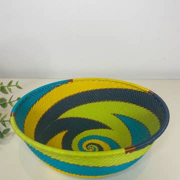 Color Tones: Black, Blues, Purple, Greens, Orange, Red, Yellow, Copper Hand made from Telephone wire. Can be washed with warm water & soap. Uses: Home Decor, office, catch all, can be used for certain foods. Each piece is unique and the designs may vary. The Zulu people of South Africa combine traditional weaving skills with contemporary design to create beautiful products and earn an income to support their families. This group has provided work for over 650 families since 2004.