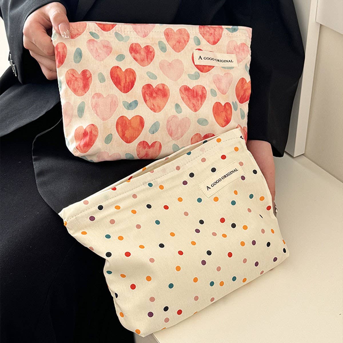 ✦PRODUCT DETAILS✦ This Cosmetic Pouch with a charming print combines practicality and cuteness and designed to keep your cosmetics organized and easily accessible. Its compact size makes it perfect for on-the-go use, whether you're traveling, going to the gym, or simply need a touch-up during the day. The cute print adds a playful touch, making it a delightful gift for beauty enthusiasts, teens, and anyone who loves trendy accessories. This Small Fabric Cosmetic Pouch is the perfect addition to your daily routine or a thoughtful present for birthdays, holidays, mother's day, valentines day and special occasions. ✦BRAND✦ We're proud to be a female-owned fashion company that operates and designs all our products in the USA. Our goal is to provide women and children with fashionable, accessible, and functional products to enhance their active lifestyles.