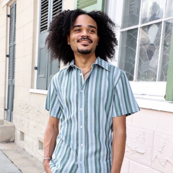Gentle tapering at the waist with a straight and narrow profile and a broader fit in the shoulders makes this shirt perfect fashion for a spring night out or even to work the next day. Makes a great sustainable gift! FIT * Model is 5'9" and wears S * Slim fit, if you're in between sizes, we recommend sizing up * This fabric does not have stretch * Plus size clothing available FABRIC & SUSTAINABILITY * 100% woven cotton * Handwoven ikat fabric * Fair trade * Our clothing is handmade so there may be a 5-10% shade variation between the product pictures and what you receive WHERE IT'S MADE * Designed in New Orleans * Handmade in India