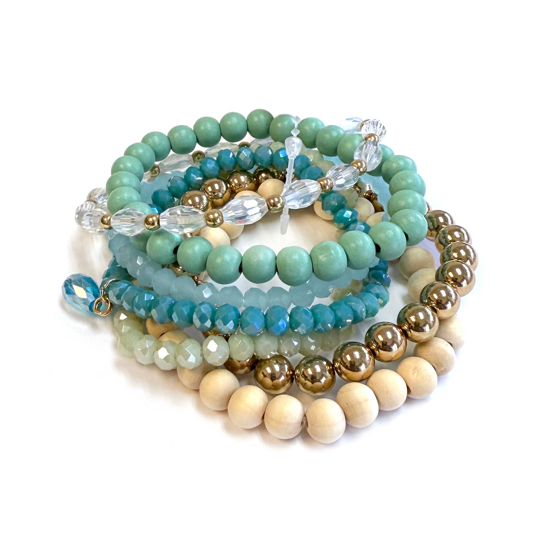 Wholesale Metallic And Faceted Glass Beaded Bracelet Set