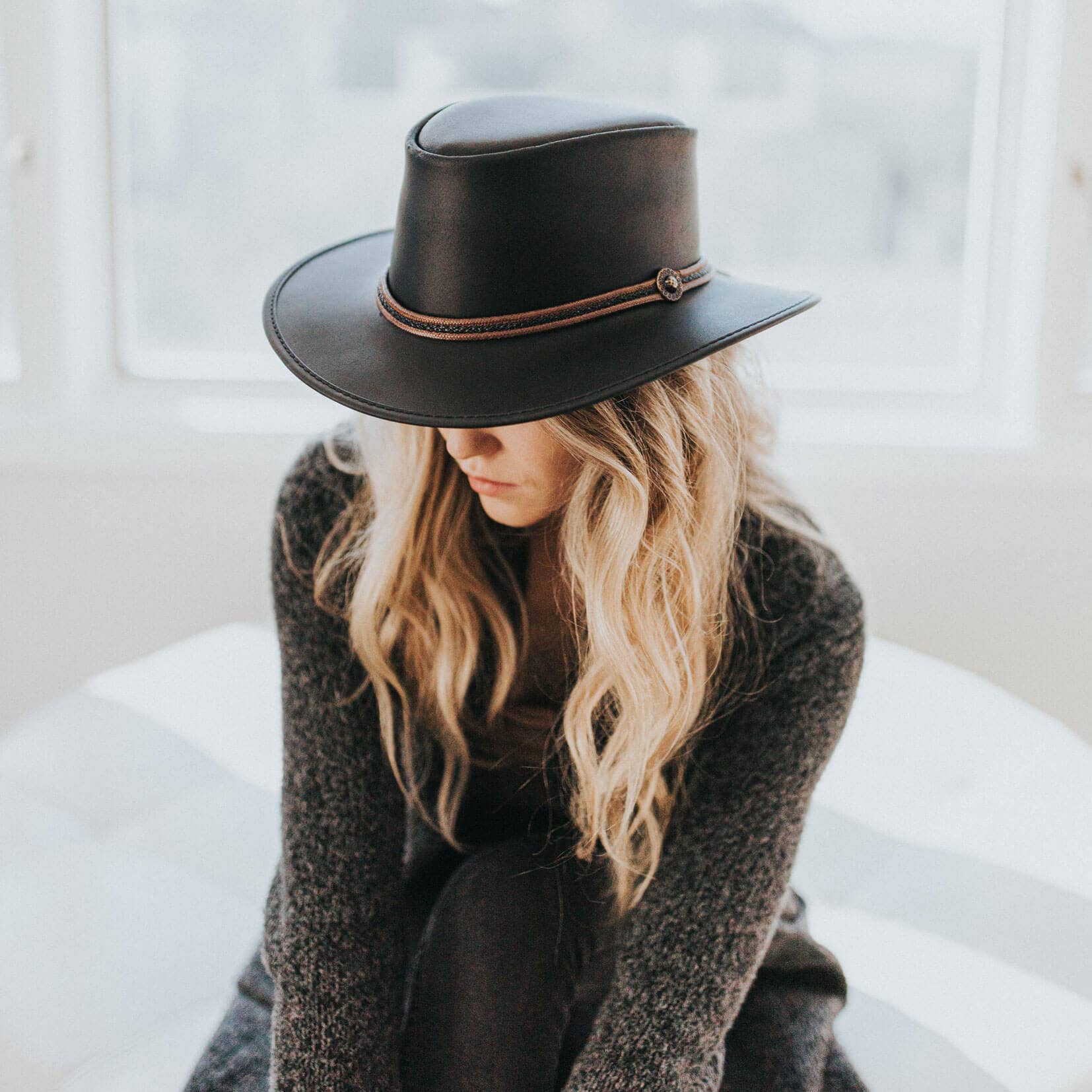 Cowhide Leather Outback Hat - Style Midnight Rider