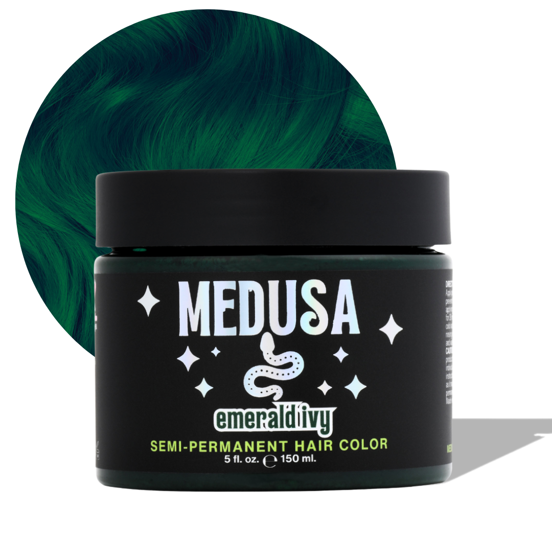 GUILT-FREE GLAMOUR!® Beware of the Deadly Nightshade!! One of our beloved Classics is back and once again in full bloom! This deep and mysterious eggplant shade is a dark, neutral purple that looks violet black when first dyed, then gradually fades with blue burgundy undertones. Deadly Nightshade can give beautiful highlights to natural hair levels 3 or higher, and you can expect very dark aubergine purple results on pre-lightened hair. Deadly Nightshade is Manic Panic’s darkest purple available and the first official member of our SuperNaturals line. Because the color is so dark, it is a perfect Undercover Color – it’s violet black in most indoor lighting, but bold purple in extra bright and natural lighting.