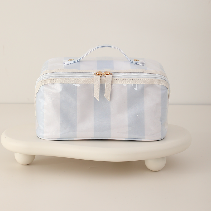 Brighten up your routine with our colorful stripe wipeable cosmetic toiletry bags! These cheerful, candy-striped bags are the perfect travel companion or vanity essential. Available in three vibrant hues. Key Features: Eye-catching stripes: Fun, bold color combos with a glossy, wipeable finish. Spacious interior: Easily fits all your beauty must-haves. Smart organization: Includes inner elastic pockets for bottles and a clear zip compartment for small essentials. Easy to clean: Waterproof lining keeps spills and messes under control. Sturdy handle: Carry it effortlessly on-the-go. Whether you're jet-setting or staying home, these bags make packing pretty — and practical! Great for toiletries, makeup, travel essentials, baby items, etc.