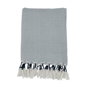Two-Toned Knitted Cotton Throw Blanket w/ Tassel Home Decor