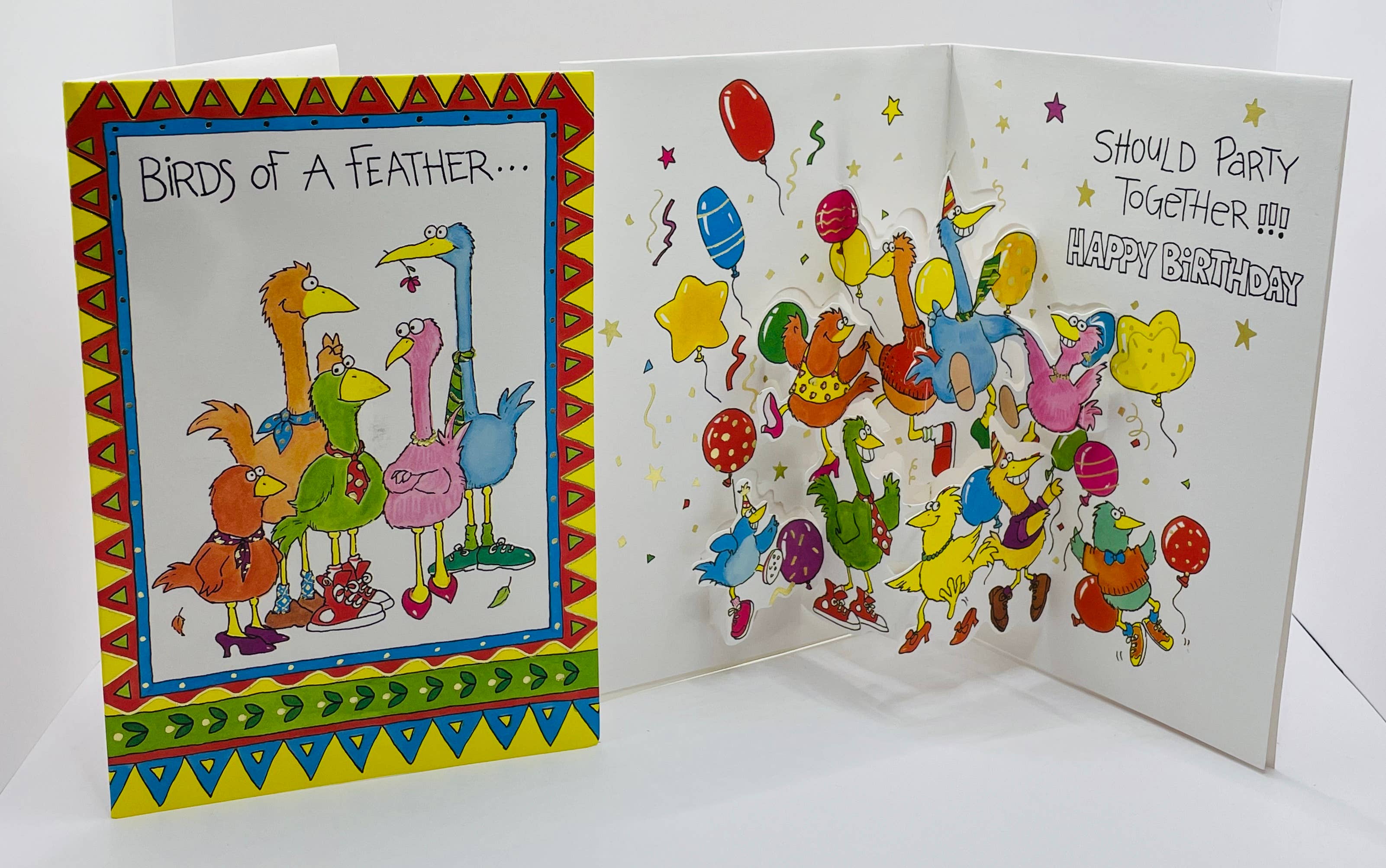 Cards come with an A-2 size envelope. 4 3/16" x 5 5/8". Front: Happy birthday to you. Happy birthday to you. Inside: Shut the fuck up.
