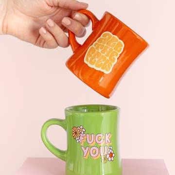 Tell the world how you really feel. Fred's SAY ANYTHING mugs offer a variety of fresh graphics and stylish typography on each 16-ounce ceramic mug. Packed in an open-faced, giftable display box. Dishwasher safe.