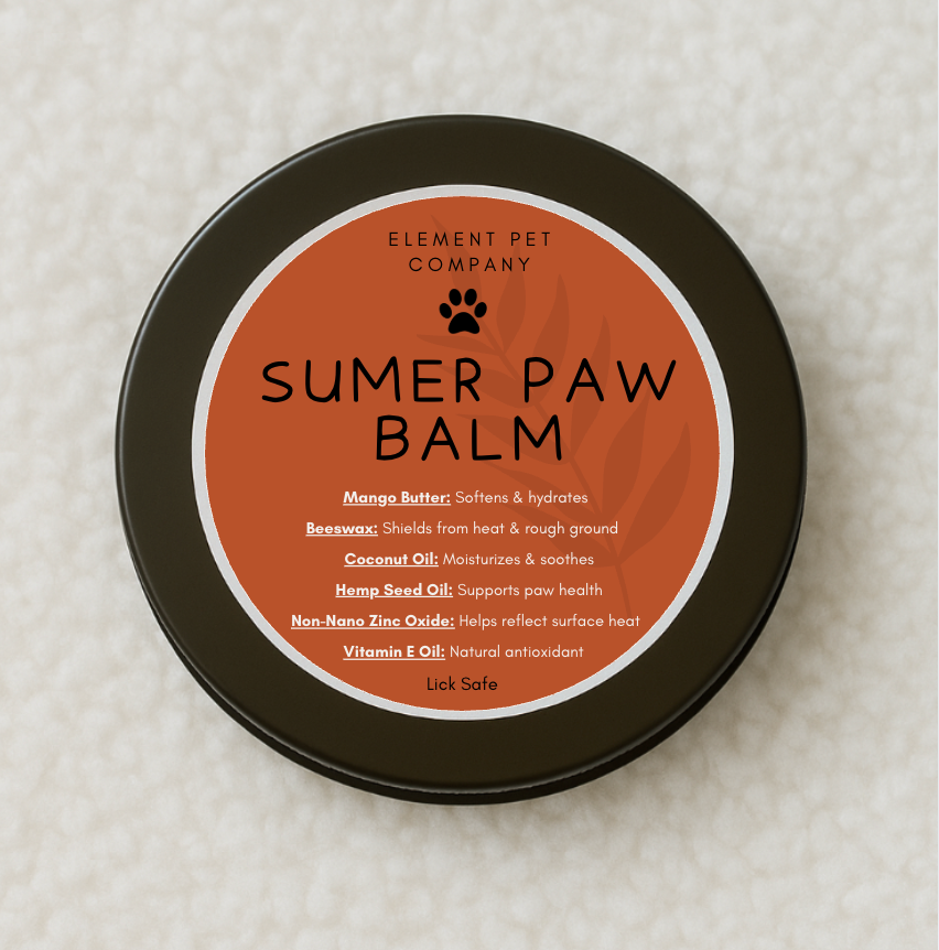 Handmande Nose & Paw Balm Handmade balm for dry paws and noses. Lick-safe, non-toxic, and 100% made by hand (with love and probably dog hair). Ingredients: Coconut oil, Beeswax, Vitamin E, Lavender Essential Oil. How to use: Scoop a little with your finger and rub it on paws, noses, or dry patches.