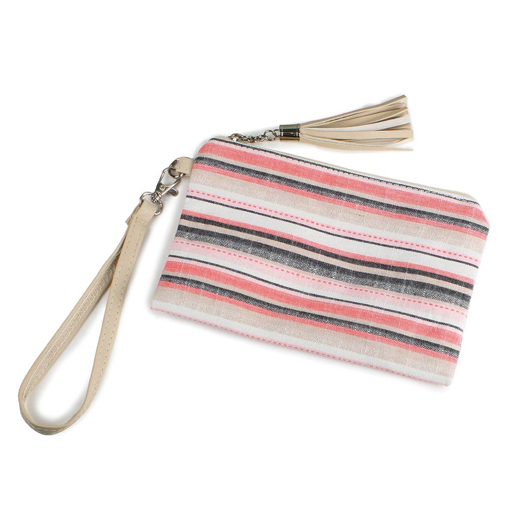 Grey Mariner Stripe Large Wristlet