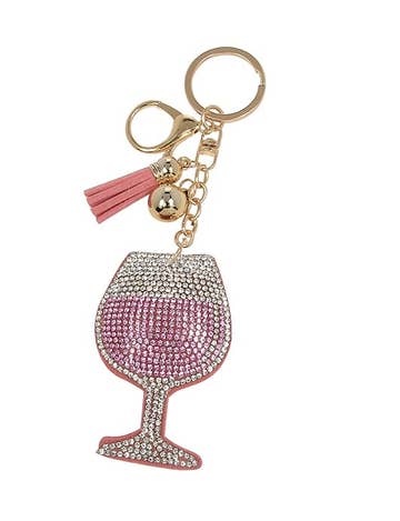 Keychain made with varnished cork, rhinestone design hardware and key charm with topaz crystal. Great gift idea for wine lovers. Lightweight and easy to find in a purse or bag. Display offered for $22.00