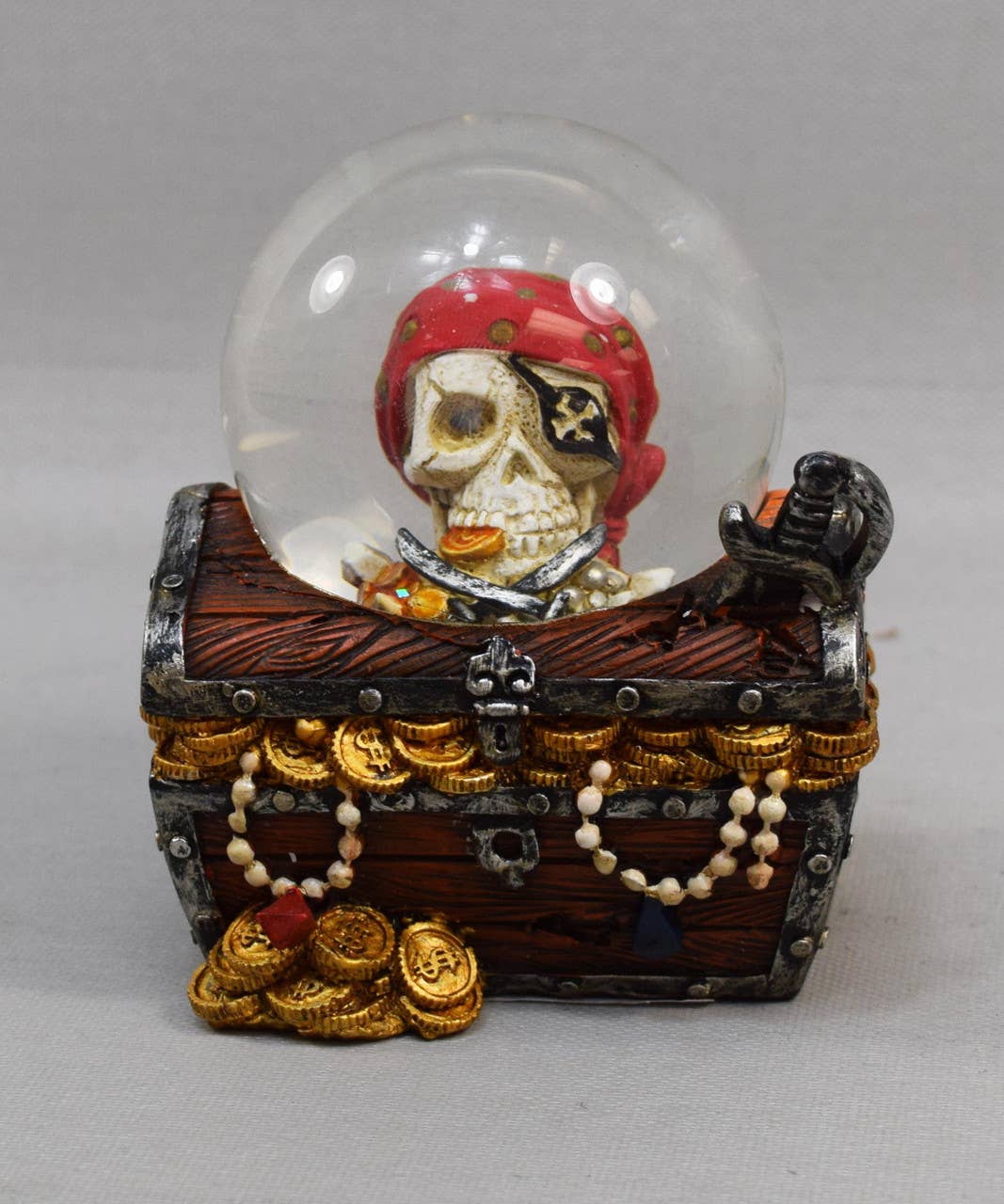 This brown pirate ship figure is great for any nautical decor, pirate party or special gift. Measures 9" x 2.25" x 8.75" Made out of wood and fabric. Packaged in a brown box.