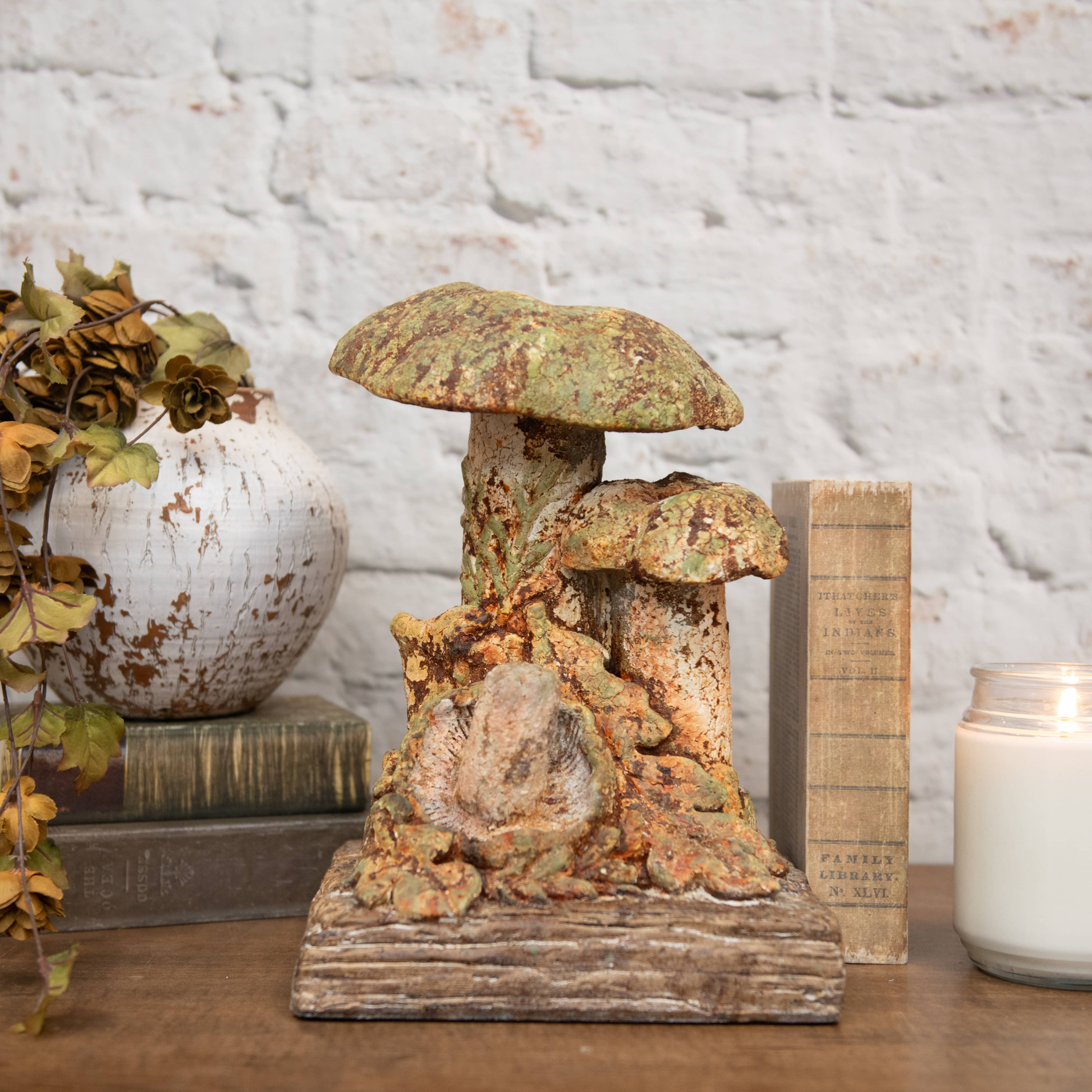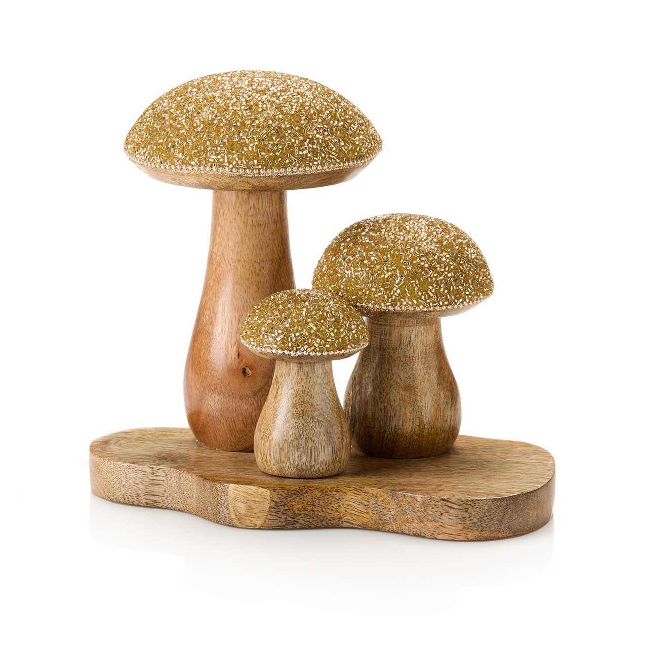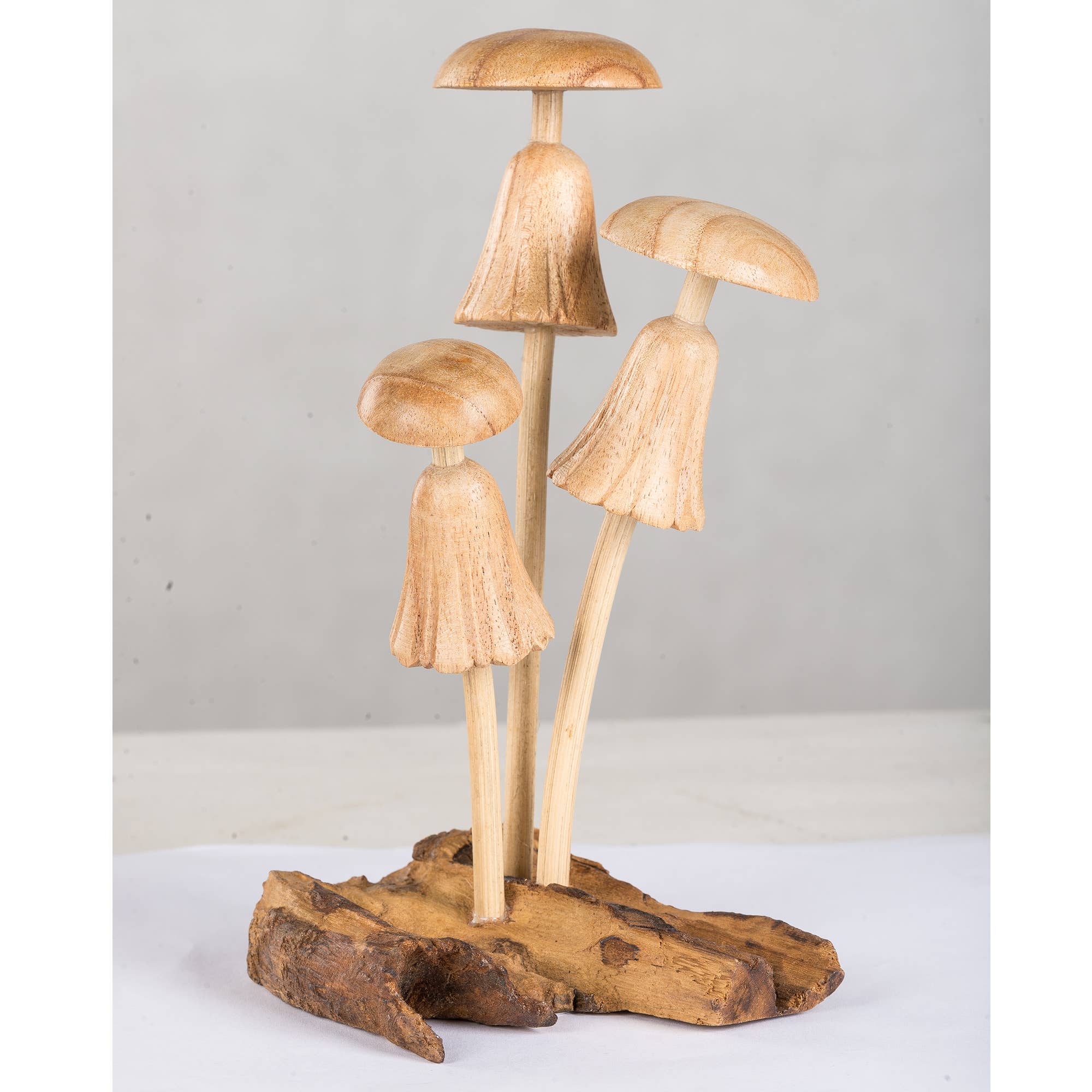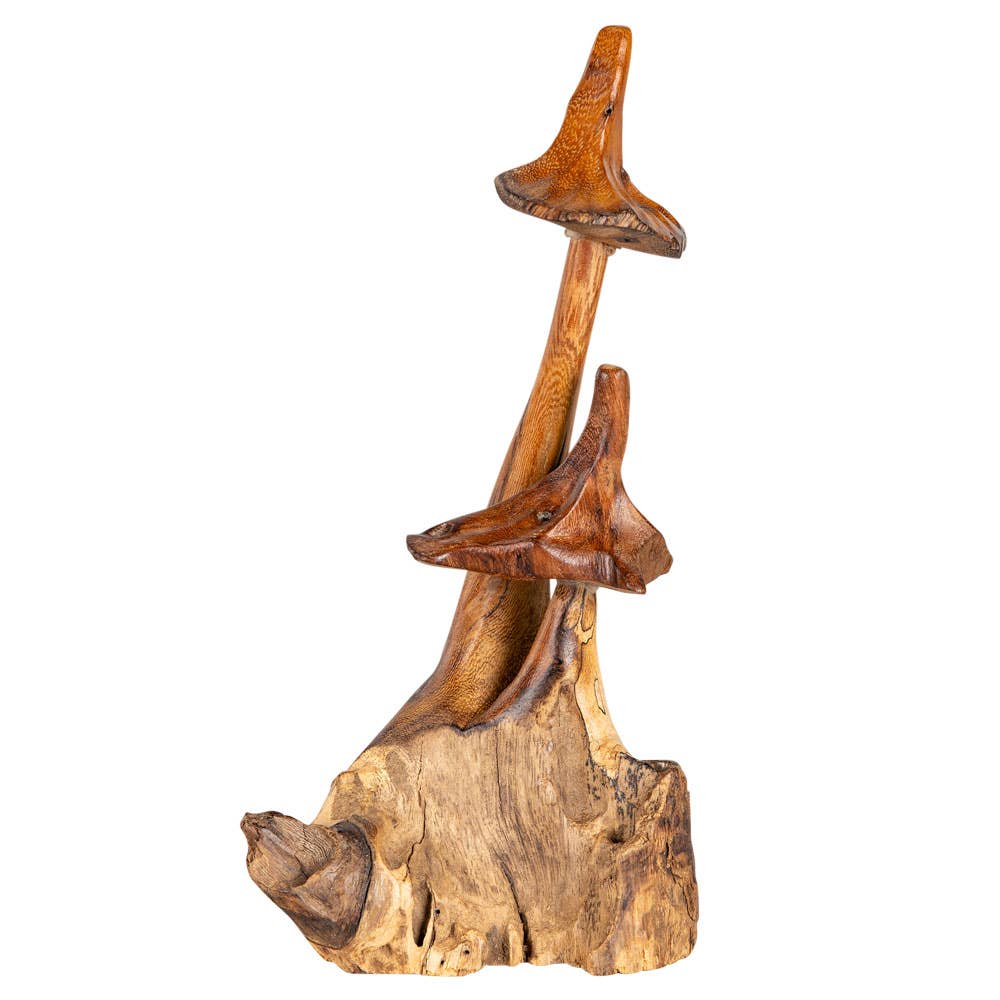 THREE CARVED DRIFTWOOD MUSHROOMS