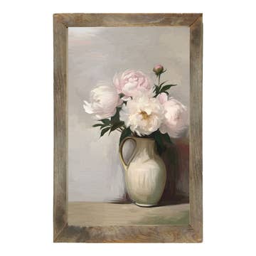Bloemen means 'Flowers' in Dutch. And this beautiful arrangement is just that! This piece is the perfect way to add beauty to any space. Printed on Bensen White fabric with eco-friendly inks, then hand stretched on a wood frame. Available in sizes 18"x12" up to 36"x29" Gallery wrap or solid wood floater frame (black, white or ash) Please add 0.5" to dimensions if ordered with floater frame Depth: gallery wrap = 1.5", floater frame = 2" All Splashworks Wall Art comes with dust cover and hanging hardware.