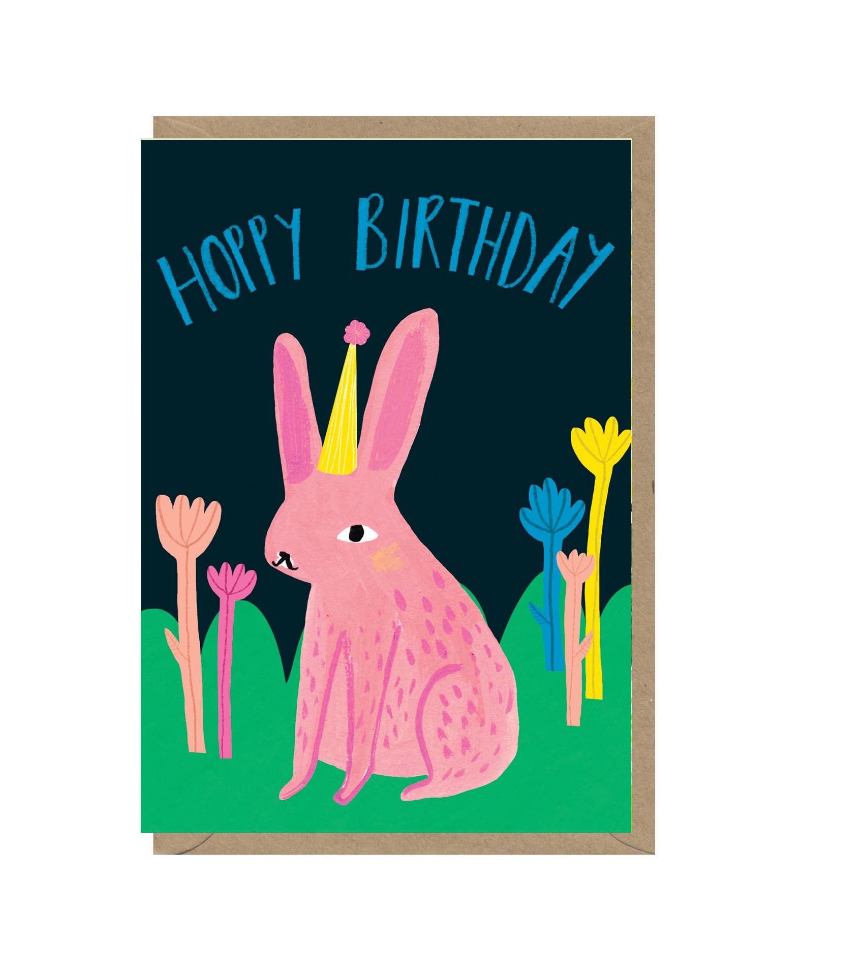 Graphite bunny with a slice of birthday cake text reads "Oh No Another Grey Hare". Details: Size - 4.25”x 5.5”. Printed on soft white paper and paired with a matching soft white envelope. Blank interior for personal message.