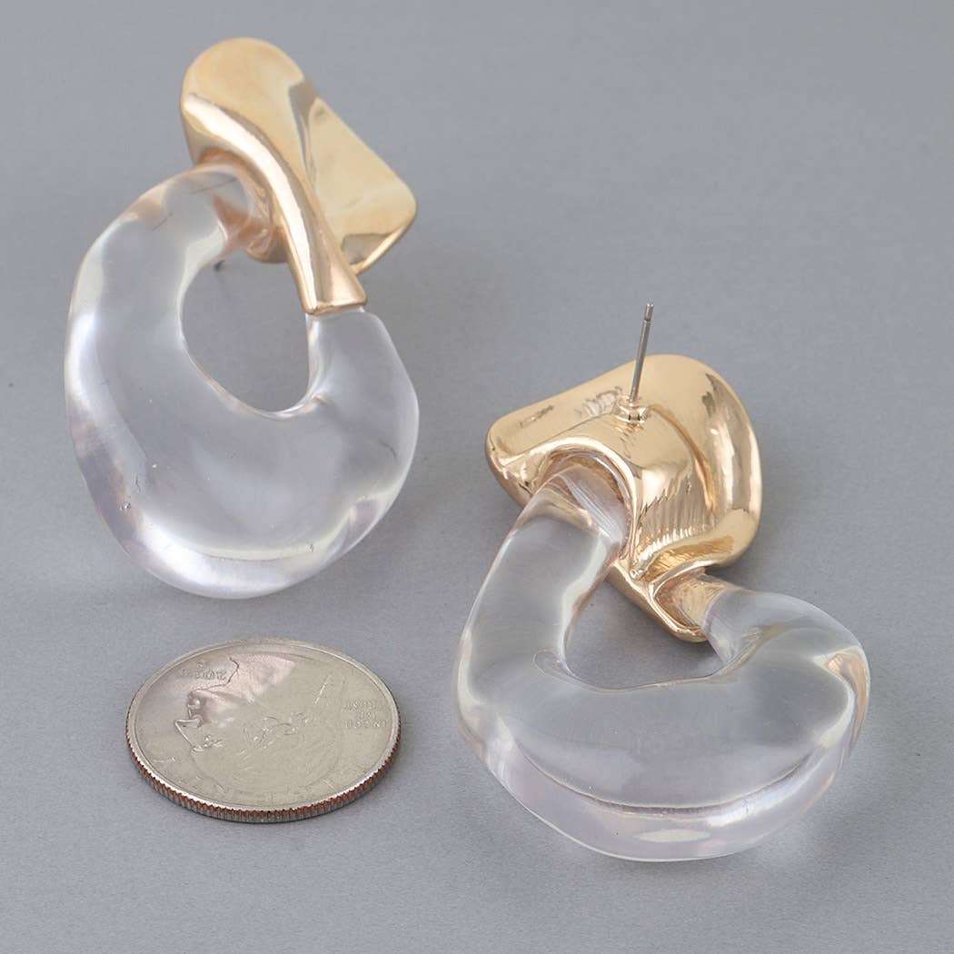 Statement Turquoise Glass Gold Stainless Steel Hoop Earring-00342