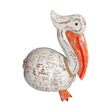 Perfect for adding a touch of coastal elegance to any space, our Pelican is a testament to the beauty of seaside aesthetics. Embrace the coastal vibe and invite the tranquility of the ocean into your decor with this charming pelican accent. 12"L x 5.5"W x 9"H Hand sculpted and beaded Beads are high quality non fading or cracking glass and acrylic Piece resist rust and corrosion, great inside or out Affordable work of art All dimensions are in inches