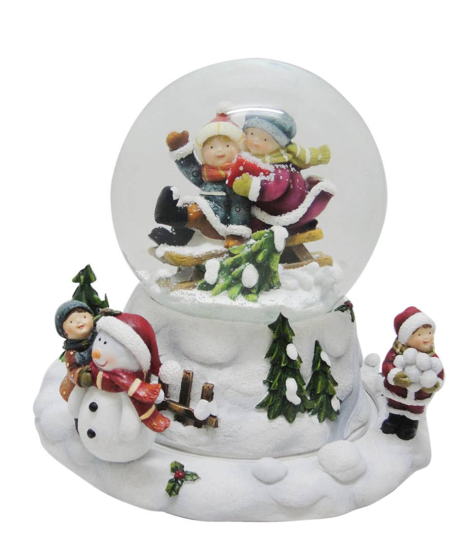 Church Snow Globe with a crib scene inside. The globe is illuminated and it have a automatic snow swirling function. It plays a medley of 8 different Christmas melodies while the snow swirls. Batterie operated. It also includes a 6 hour timer. Height 12.9"