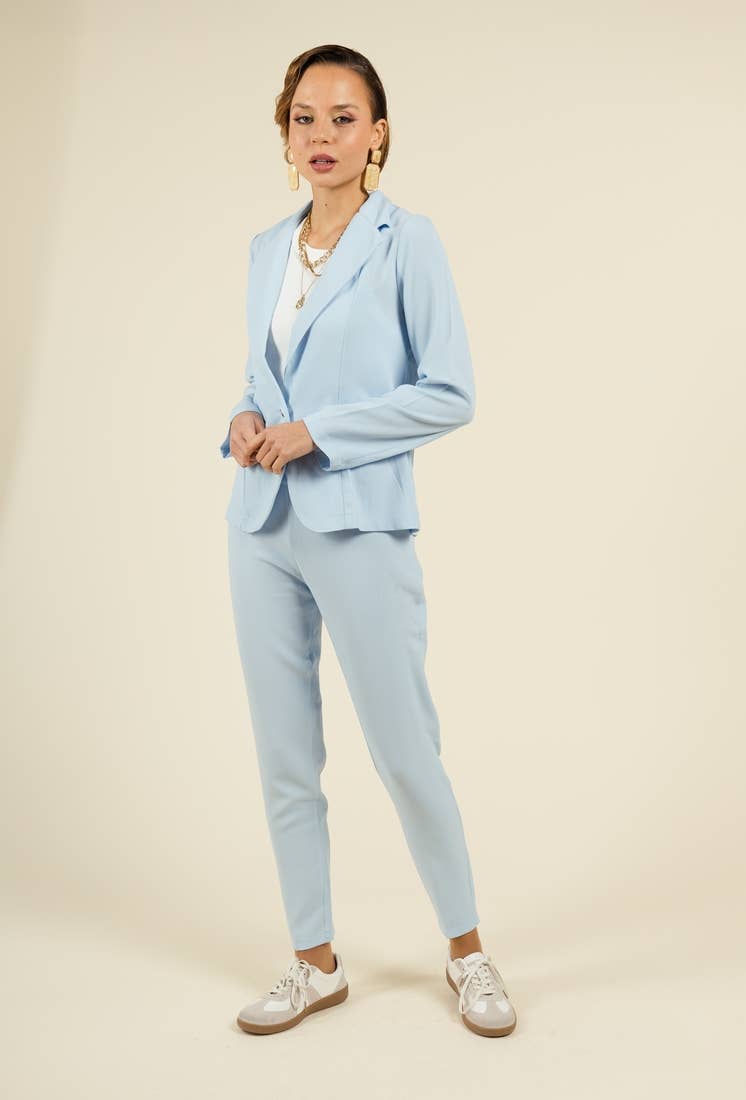 Straight cut pleated pants in a fluid material and a high waist. Zipped on the side Composition: 97% Polyester 3% Elastane Machine wash at 30°