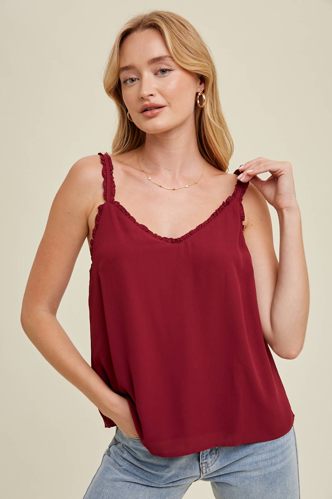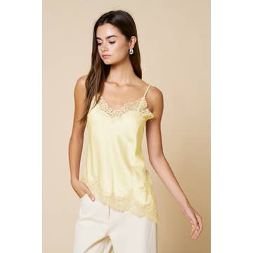 CHAMPAGNE SATIN CAMI WITH LACE TRIM DETAIL / WL23-8368 for wholesale on Faire1