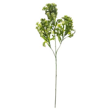 Easily dress up every day displays with the Cream Tipped Baby's Grass Bush - 14". This 14" tall bush features an abundance of small rounded leaves that fade from deep green in the center to cream at the tips. The bush is made of plastic with plastic-coated wire stems. This lush accent looks great with Springtime decor and is wonderful for everyday use as well!