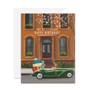 Happy Birthday to a true Classic! For the classic boat birthday card for the captain in your life. A2 size. Printed on bright white linen card stock. Blank inside. Accompanied by a Michigan-made brown kraft paper envelope. Individually sleeved in open cello bags.