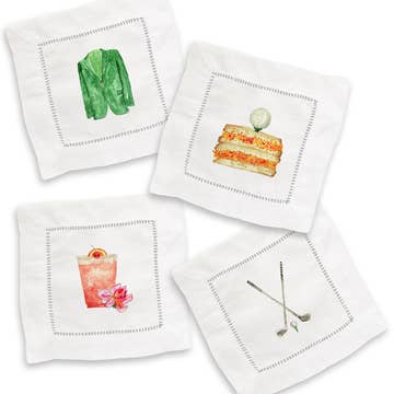 Our Cocktail Napkin Collection features Henry Handwork's most popular designs, coordinating with many popular tabletop and barware patterns. Our customers merchandise cocktail sets with coordinating Napkins. Sold in ribboned packages of four square cocktail napkins, these make a perfect housewarming, host or hostess gift. Designed in Portland, Oregon and meticulously hand-embroidered and hand-hemstitched on cotton by the world’s finest artisans, our motifs have strong, year-round sell-throughs in gift shops, as well as home and linen specialty stores. Our hand-crafted products are meant to be used daily and enjoyed! With proper care and laundering they will become heirlooms. Machine wash on gentle cycle with cool water, or hand wash. Avoid bleach and brighteners. Tumble dry on low heat. For traditional crisp finish, remove from dryer after wrinkles are released and while still damp; line dry. Iron on reverse using cotton setting.