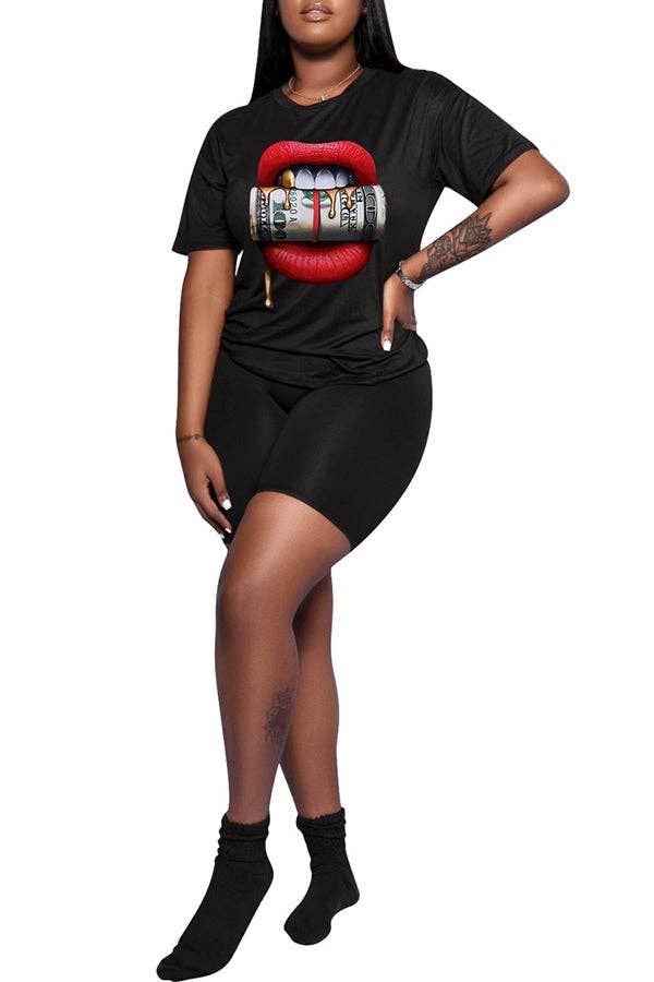 MB FASHION O-NECK PRINTED SHORT SET 323LY
