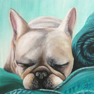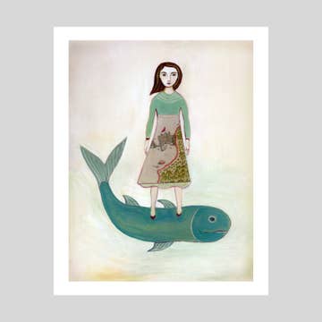 A beautiful mermaid pug sits atop a rock. All art prints are high quality reproductions of Gianna Pergamo's mixed media pieces. She creates them using collage from vintage imagery and acrylic paint on canvas. -8x10" print, standard/easy size to frame or mat -Signed on the front -Professionally printed on thick FSC certified card stock -Packed with backing board in plastic sleeve sealed with flap -Artist biography card included Artist bio card in back of sleeve reads: Pergamo Paper Goods eco friendly family friendly gay friendly Gianna Pergamo is a mixed media illustrator and RISD alumna from Brooklyn, NY, now working in St. Petersburg, FL. Creating original pieces from new and old materials, Gianna combines the dynamics of collage and painting into delightful and sometimes peculiar pieces of art. She is inspired by animals, nature, and textile patterns.
