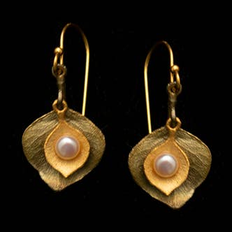 Dainty and feminine gold plated lily with tiny freshwater pearl in pink/peach. Comes with 14k gold-filled French ear wires for easy wear. Care instructions: Gold plated items and gold vermeil should not be worn in the shower, pool, or the ocean. It can fade the gold finish more quickly. Pearls, gemstones, and stalacties should be handled with care. Oils and other liquids can permanently damage or change the color of the stone.