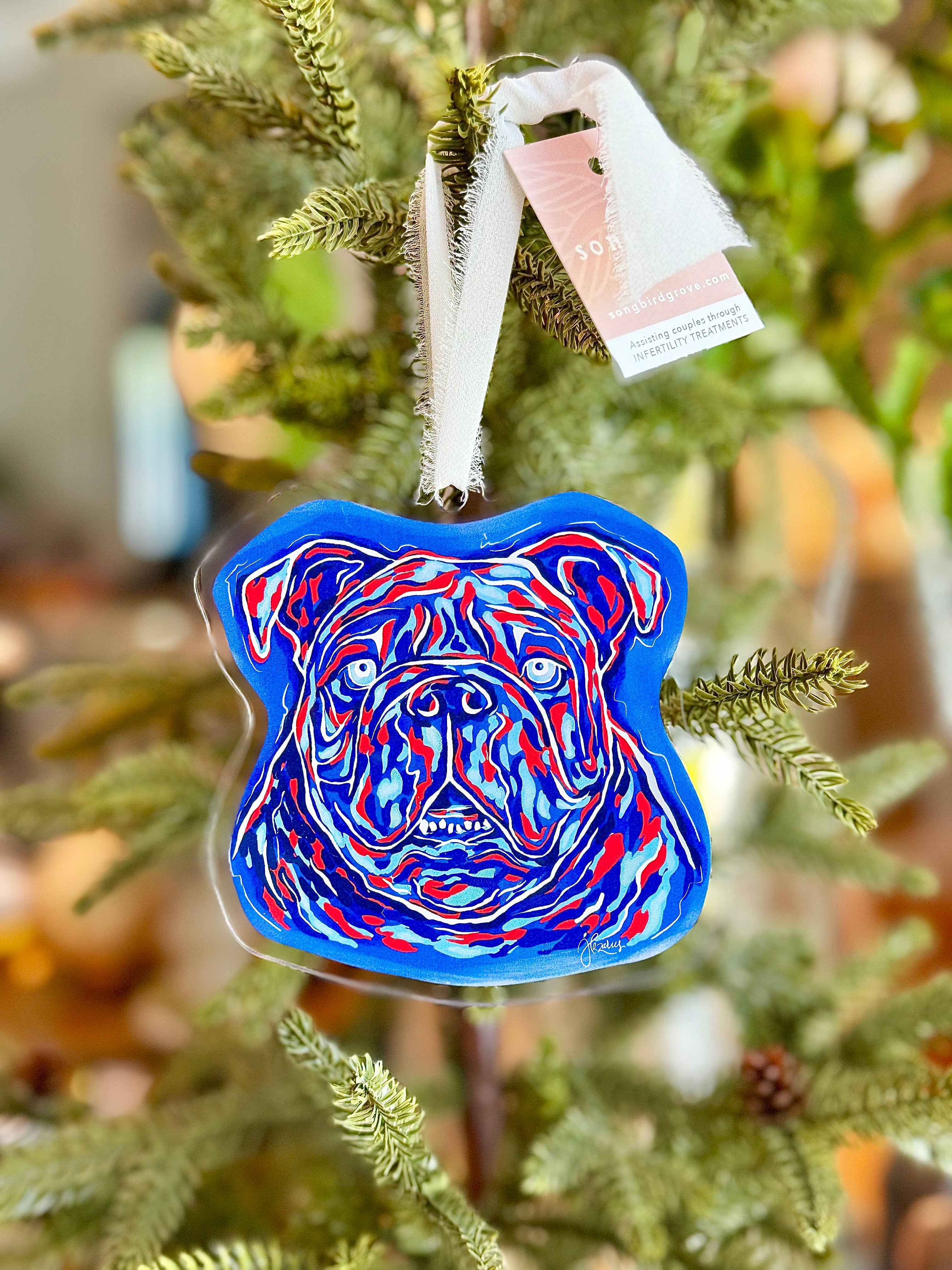 Here's the perfect ornament addition for the Proud American! These beautiful acrylic ornaments make great gifts for anyone, especially those in the military and veterans! Artwork is original, hand-drawn, and printed on clear acrylic. Ribbon may differ depending on inventory.