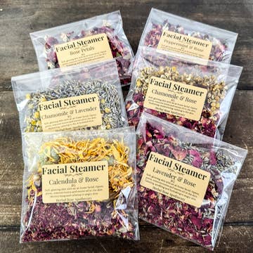 Herb and flower facial steam. Plump It Up is your new fountain of youth. Lavender is anti-aging and fights acne. Collagen building rose hips are high in Vitamin C which helps with healing and repairing damaged skin cells, while also reducing redness in the process. Calendula is the ultimate skin healing herb and has been used for centuries for all types of skin aliments. Yarrow has antiseptic, astringent, and antimicrobial properties. Facial steams boost circulation, oxygenates skin and the aromatic herbs are calming to the nervous system. Great for all types of skin.