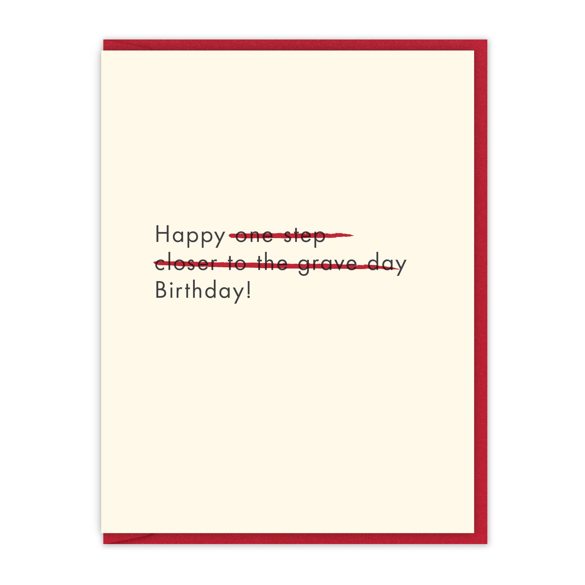 SKU: GCS007 Made in United States Color: Black and Red Finish: Letterpress Is Set: Individual Occasion Theme: Birthday Tone: Funny Product Language: English Product Materials: Plastic-free and Recycled Packaging: Plastic-free