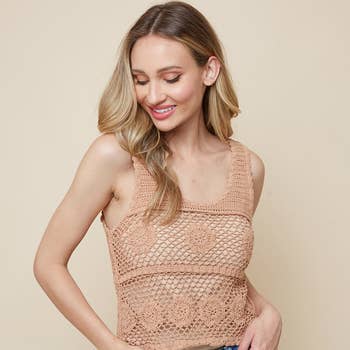SMOCKED CROSS-OVER CROP MINI - SELF TIE SHOULDER STRAPS, FITTED, CASUAL 70% VISCOSE, 30% LINEN *No returns or exchanges* * Due to lighting and differences in monitors, actual colors may vary slightly from what appears online.
