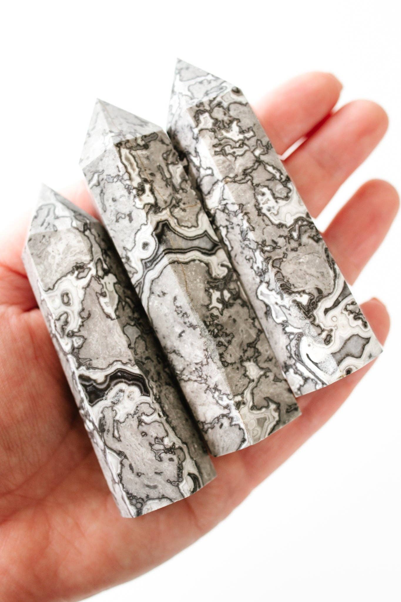 A stone full of powerfully supportive energy, Picasso jasper has a beautiful marbled appearance, almost like brush strokes. This stone is thought to be helpful for cleansing away unwanted energy. These unique pieces were hand-selected, cleared, and infused with Reiki energy to amplify their power. The pointed shape is excellent for amplifying intentions. Each stone is unique and hand-selected for beauty and its vibrational energy. Size and color will vary slightly. Each stone is approximately 2.5" in length.
