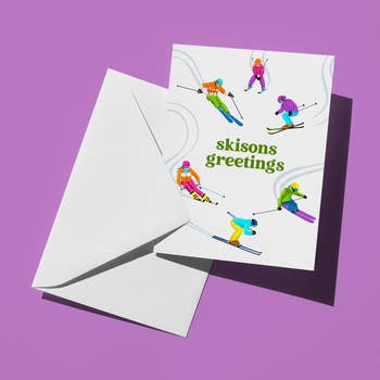 Hit the slopes with "Snowmass Ski Bunnies Four", a 5” x 7” greeting card featuring four whimsical, collaged rabbits poised atop a ski slope, ready for their downhill adventure. The sun with dynamic rays adds warmth to the crisp white snowy landscape, while the bold "Snowmass" text at the bottom ties it all together—perfect for ski lovers and winter enthusiasts. Why You'll Love It: ✔ Charming & Playful Artwork – Four bunnies on skis, bringing a lighthearted winter vibe. ✔ Premium Quality – Includes a matching white envelope, packaged in an eco-friendly sleeve. ✔ Blank Inside – Plenty of space for a personalized note for any occasion. ✔ Customizable – Personalize with your City or State with orders of 6+ cards. ✔ Eco-Conscious & Sustainably Made – Proudly printed in the USA using high-quality materials. Part of our Winter Love Collection, this card is perfect for Snowmass gift shops, ski-town boutiques, and outdoor adventure lovers who embrace snowy mountain fun!