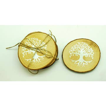 Size: 4"x 4"x 1/4". Quality: 100% recycled wood source. Sustainable: We make them strong (1/4" thick) so that they can be re-used forever. Made with sustainable inks and a UV coating, as well as, an eco-friendly lacquer that covers the entire coaster to permanently protect the wood. They also have recycled rubber stoppers on the bottom for grip and support. Care: Washable with soap and water.