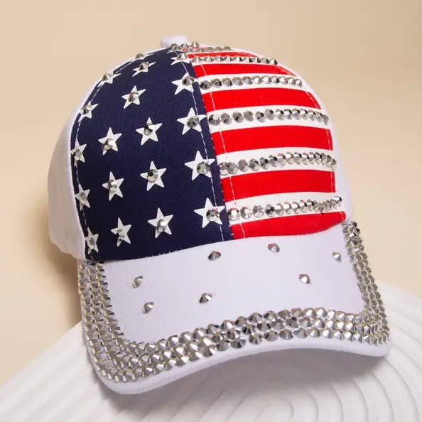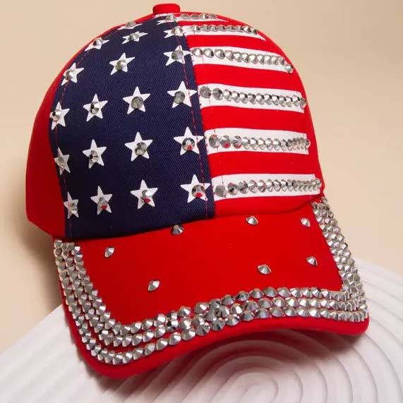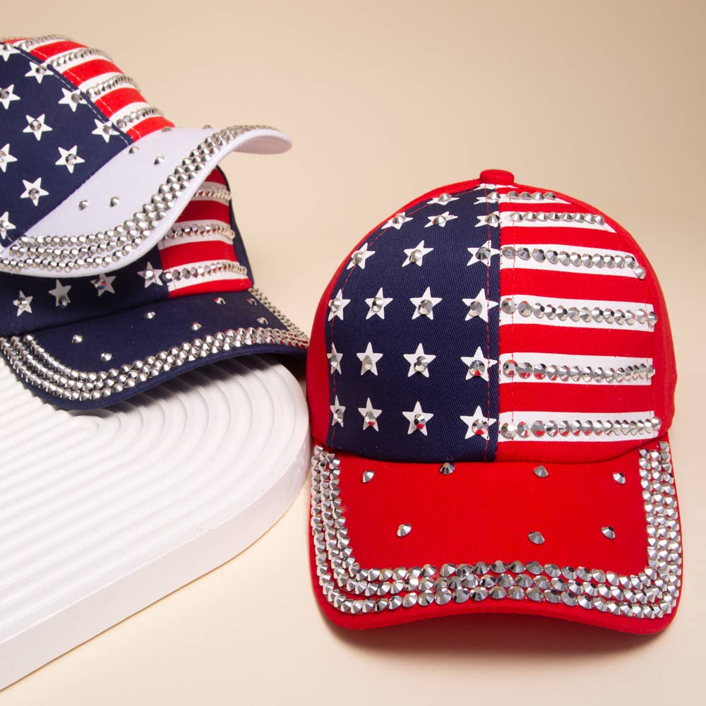 Rhinestone American Flag Denim Baseball Cap