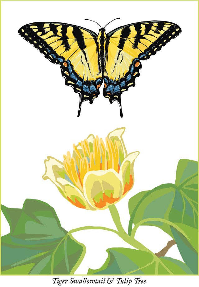 5" x 7". 100% recycled matte cardstock. To order more than 19, you must choose "19+" from the quantity drop-down, and then edit the number for the quantity you desire. The geography and climate of the Commonwealth of Virginia are shaped by the Blue Ridge Mountains and the Chesapeake Bay, which provide habitat for much of its flora and fauna. It is also home to the Shenandoah Valley and Appalachian Mountains. The state tree is the flowering dogwood, and the state insect is the Tiger Swallowtail Butterfly. Original artwork by Catherine LaPointe Vollmer.