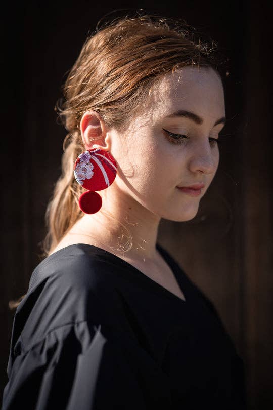 KOTO - Wholesale Dangle Earrings - Kimono Fabric Earrings—ASANOHA PATTERN—BLACK-Large