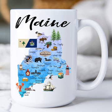 These coffee mugs have a classic, yet chic mug design. They have a smooth molded ceramic composite and a glossy colored exterior with matching colored interior. These mugs come with a c-curved handle for an easy comfort grip. -- Designed by hand in Maine -- 11 ounces -- Double sided design [Maine cocktail glass, Maine whiskey glass, Maine wine glass, Maine mug, Maine tumbler, Maine drinkware, Maine glass, Maine inspired, made in Maine]