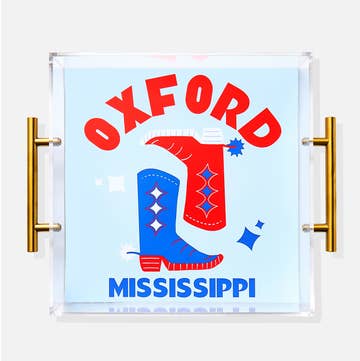 Get kickoff ready with our colligate serving tray. Use this tray for serving your favorite drinks and snacks at your next tailgate or watch party. War eagle! -Size: 6.5’’ L x 9.5’’ W x 1.5’’ H -Made of acrylic -Handmade with love in Dallas, Texas -Use a soft damp cloth to clean and keep inside.