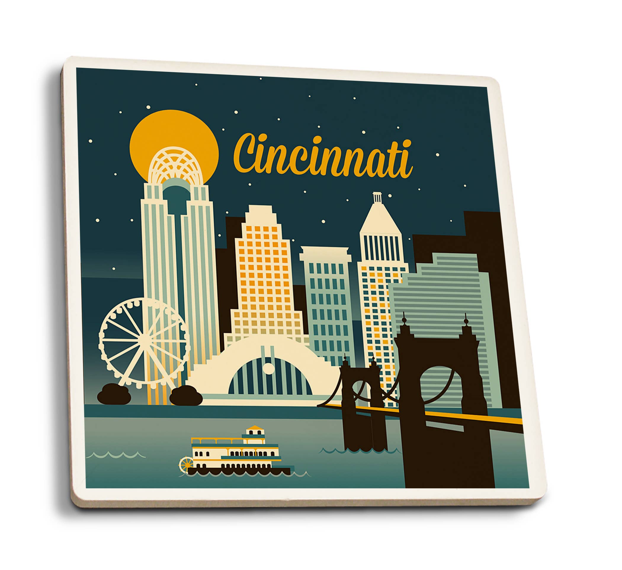 Our coaster tiles are made from a proprietary ceramic blend which means they will absorb the condensation right off your glassware - no more water rings on your tables! 4" x 4" absorbent ceramic coaster tile. Versatile cork pad on bottom. Durable UV printed graphics. Natural look tumbled edges. Marbled background. BONUS: Sets of 4 comes with gift box.