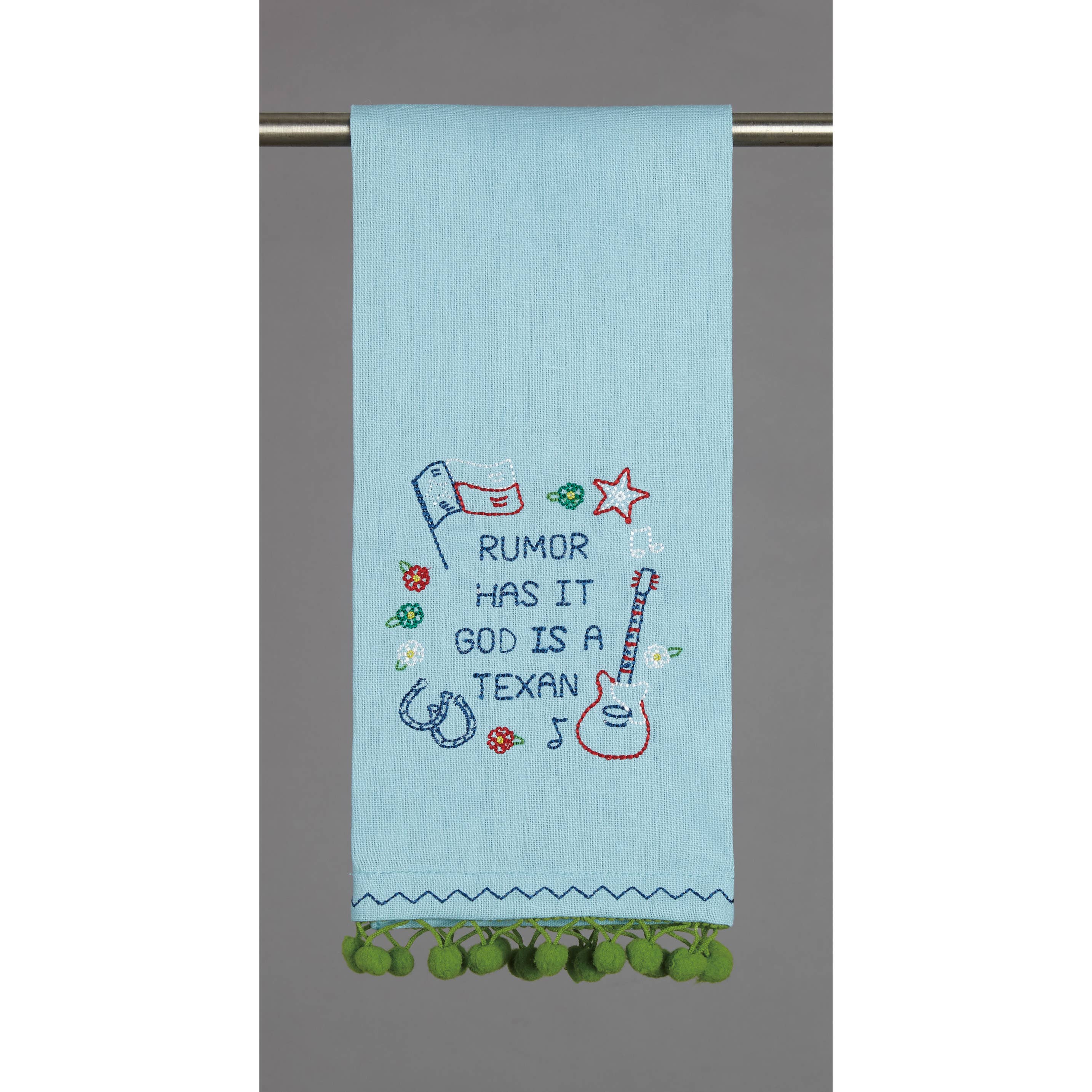 "You May All Go to Hell and I will go to Texas" - Davy Crockett All-Purpose Kitchen Towel Size: 27 1/2" x 18. Features an original hand-illustrated design. Premium 100% cotton. Towels are an off-white cream color. Loop tag on back for easy hanging. Each towel is individually screen printed by talented local artists. Designed and Printed in Nashville, Tennessee.
