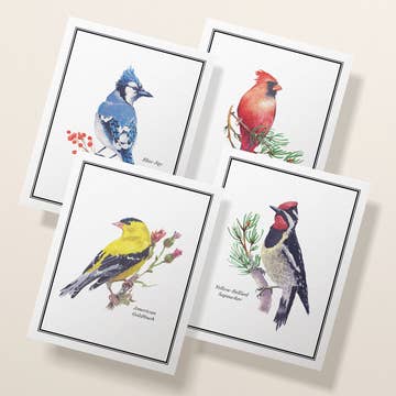 • Boxed set of 12 cards consisting of the designs shown • Printed sustainably on recycled paper sourced from North America • Measures 4.25 x 5.5 inches • Blank inside • Includes thick white envelopes made from 100% recycled paper • Ships in shelf-ready packaging made from recycled Kraft paper