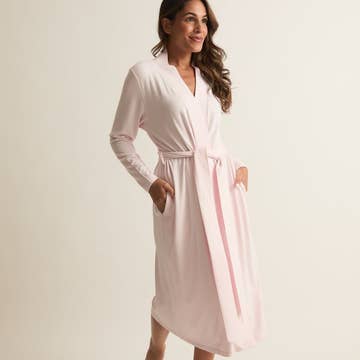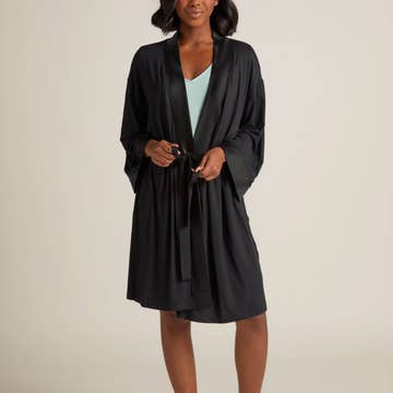Classic elegance wrapped in comfort. The sleek silhouette of our exclusive, brushed finish Söft Lounge Robe is perfect for all-season lounging. • Graceful, knee length hemline • Wide, removable sash and inside ties • True to size in 2 sizes. S/M fits size US 4-10, L/XL fits US 12-20.