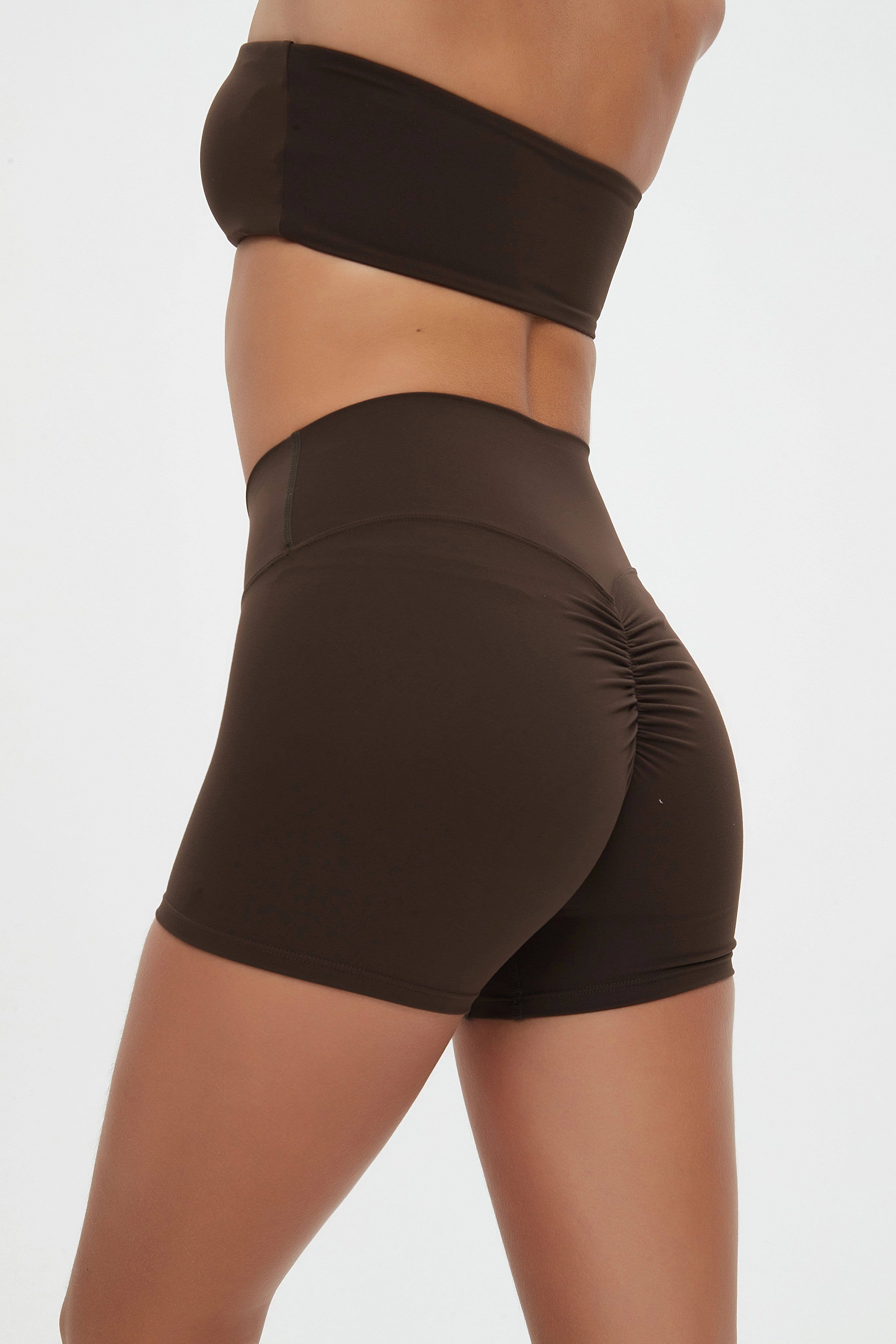 Introducing our sleek cross-waist, yoga and fitness shorts with a breathable, stretchy fabric and a ruched butt design. The innovative cross-waist feature flatters your figure and offers added support, while the ruched detailing at the butt enhances your curves, giving you a toned and confident look. Crafted for ultimate comfort and performance, these shorts are made from lightweight, breathable material that keeps you cool and dry during your workouts. The elastic construction ensures a flexible, unrestricted fit that moves with you, making them the perfect choice for yoga, Pilates, or any high-intensity fitness activity. Length: Short Waist Line: High Waist Fabric: Medium Stretch Material: Knitted Fabric Composition: 75% Polyamide, 25% Elastane Care Instructions: Machine Wash, Do Not Dry Clean Pockets: No