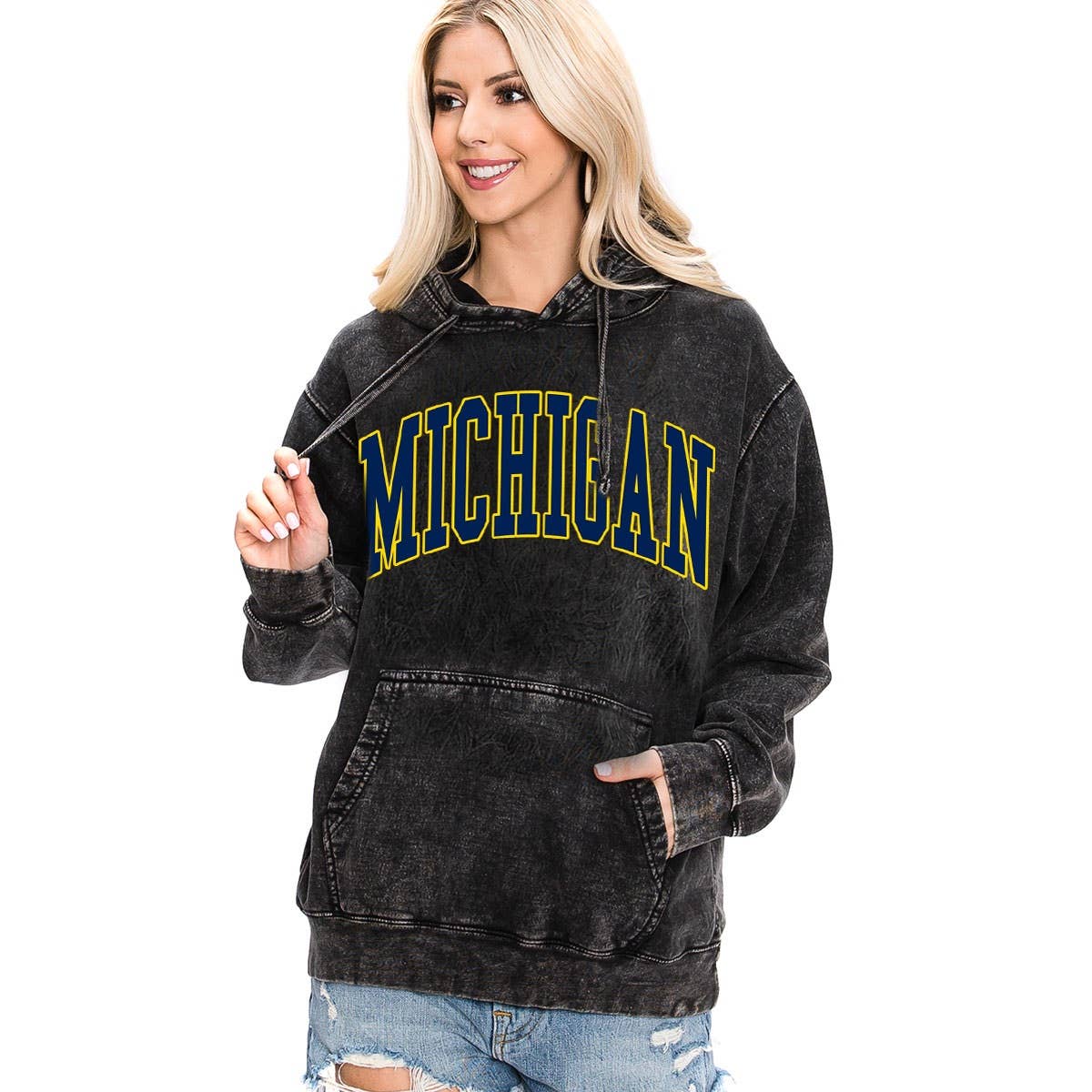 Turnaround Time: 15-18 days (calendar days). This ultra-soft crew neck with dropped shoulders and relaxed hi-lo curved bottom hemline features ribbed neckline, cuffs and hem. Our favorite worn look is achieved by the burnout wash process. Fabric: 60% cotton, 40% Polyester Care: Machine wash Fit: Relaxed fit Available for these schools: Indiana Hoosiers Iowa Hawkeyes Michigan Wolverines Michigan State Spartans Nebraska Cornhuskers Ohio State Buckeyes Penn State Nittany Lions Purdue Boilermakers