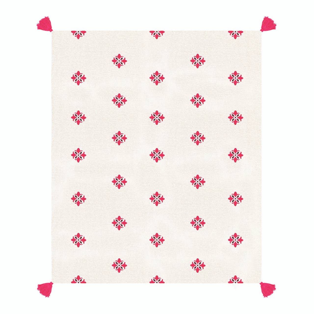 Jacquard knit throw with graphic floral stripe pattern. Cotton-weight for year-round use. Birdseye knit pattern on reverse.    Details 100% Soft Acrylic Machine wash cold gentle cycle, dry flat 50"W x 60"L