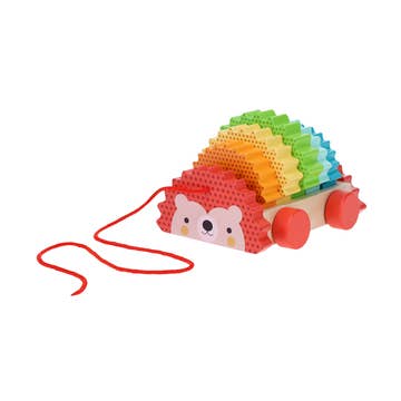 Vroom, vroom! Watch out for the tractor! It’s carrying all the bales of straw! But where is it going? The tractor is heading to the field to feed the patiently waiting sheep and hens. This adorable wooden tractor consists of a removable trailer, 4 bales of hay, a hen and a sheep. Thanks to its pull-along string, this tractor will be a great walking aid for little ones. Furthermore, its silicone wheels mean it can be pulled silently around the house without marking the surfaces. Pull-along early-learning toy for children aged 12 months and up.